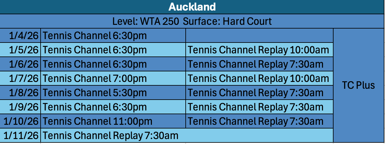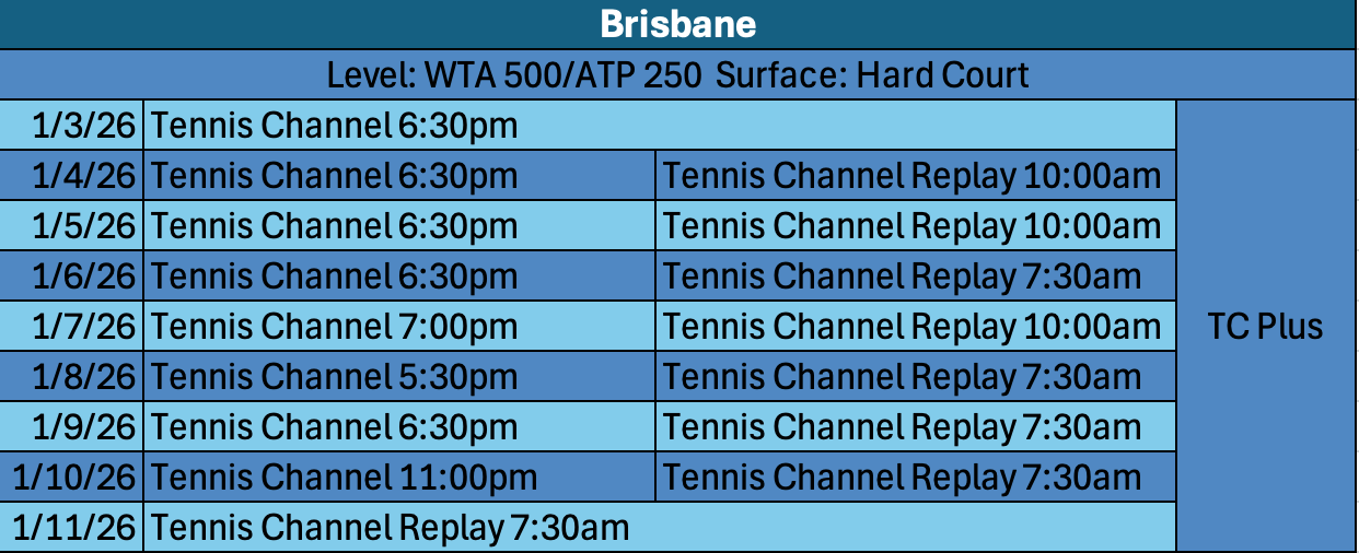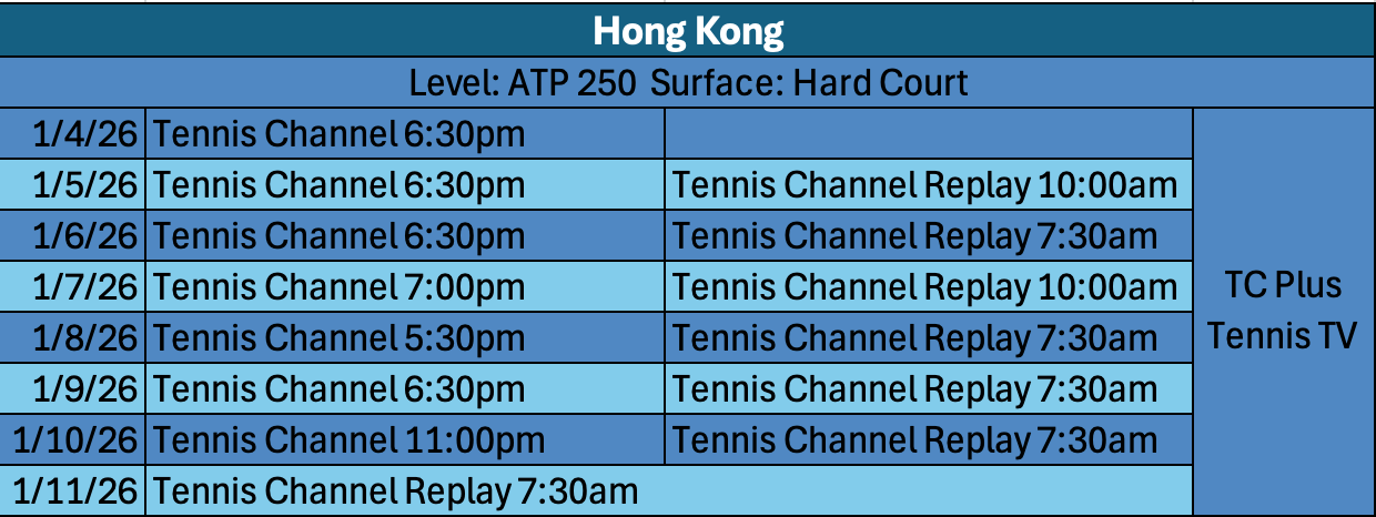 This weekend action will kick off with the joint WTA/ATP Brisbane event, followed by Auckland (WTA) and Hong Kong (ATP). As always with the Australian Swing, live matches will start in the evening stateside with replays the following day. Coverage will be on Tennis Channel/TC Plus and ATP Streaming available on Tennis TV.